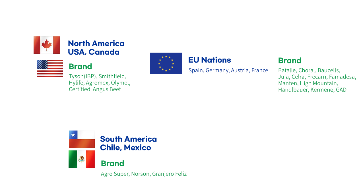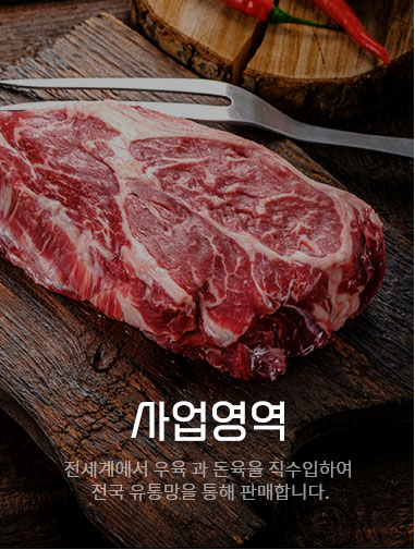 북미, 남미, 유럽 등 전세계에서 우육과 돈육을 직수입하여경쟁력 있는 가격으로 전국 유통망을 통해 판매를 하고 있습니다.
